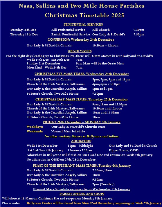 | Religious Ceremonies are also available via the webcam or parish radio, 107.3. | |