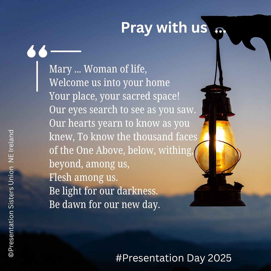 On this Feast of the Presentation of the Blessed Virgin Mary, a special prayer for the Presentation Sisters living in @KANDLEi Their foundress Venerable Nano Nagle would ask who will carry the lantern, they carry it so well in the company of their collaborators @PresSisNE