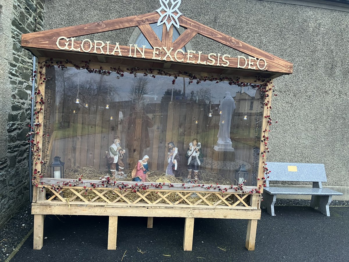 The indoor and outdoor cribs in place in St. Peter’s Church, Two Mile House in @naasparish as we await the birth of Jesus.