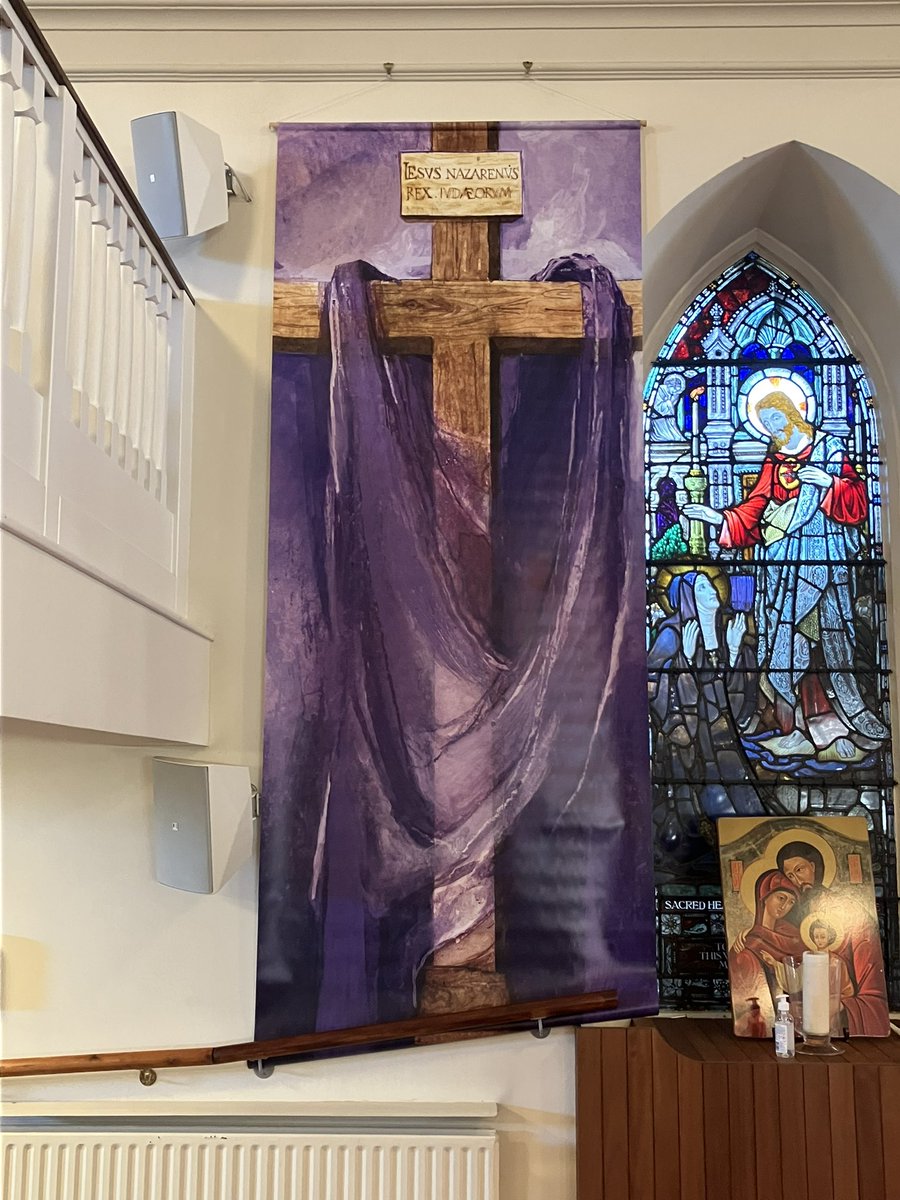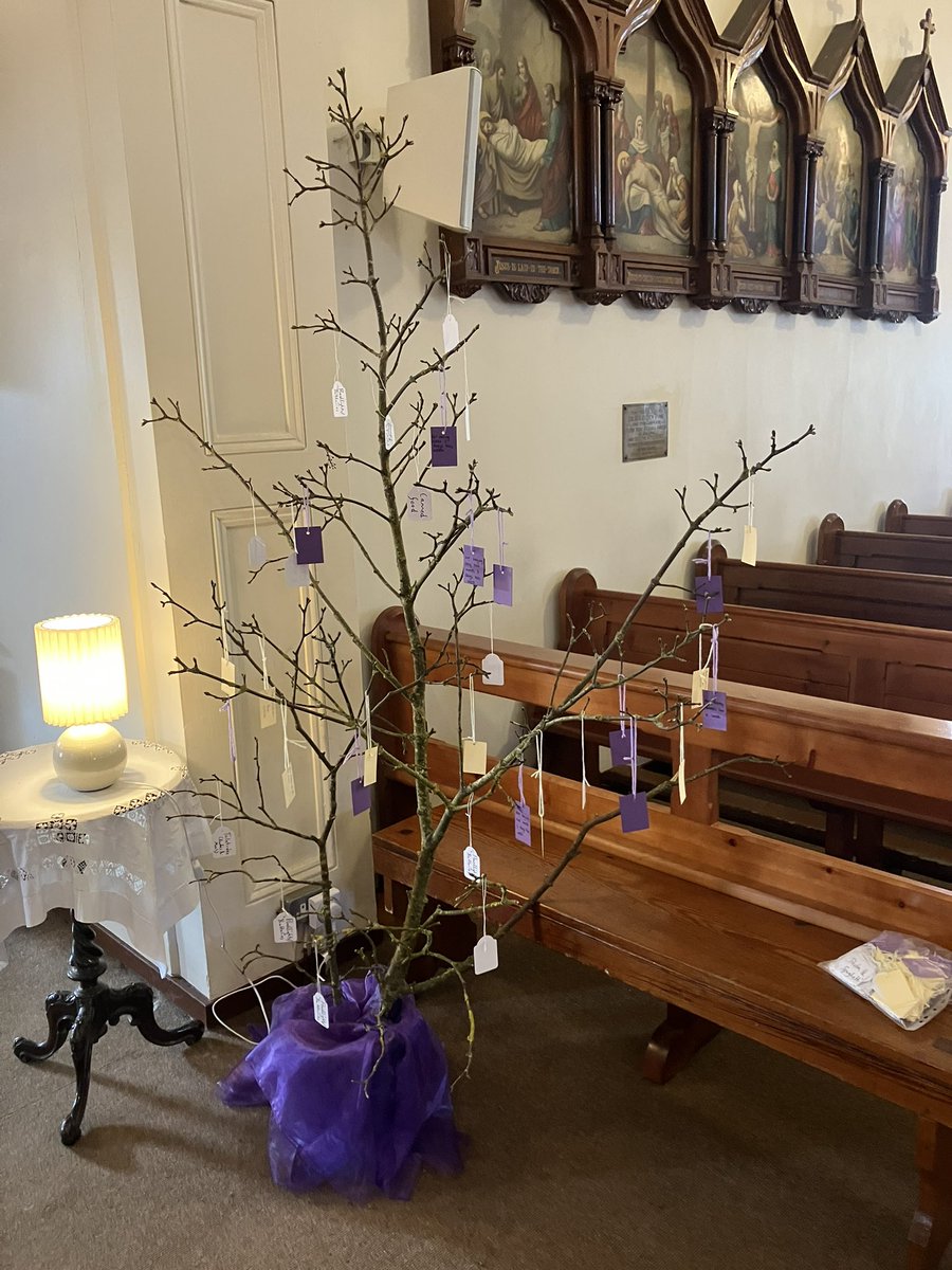 The Banner and Tree in St. Peter’s Church, Two Mile House to mark the season of Lent. The labels on the tree offer suggestions as follows:-Yellow - prayers;